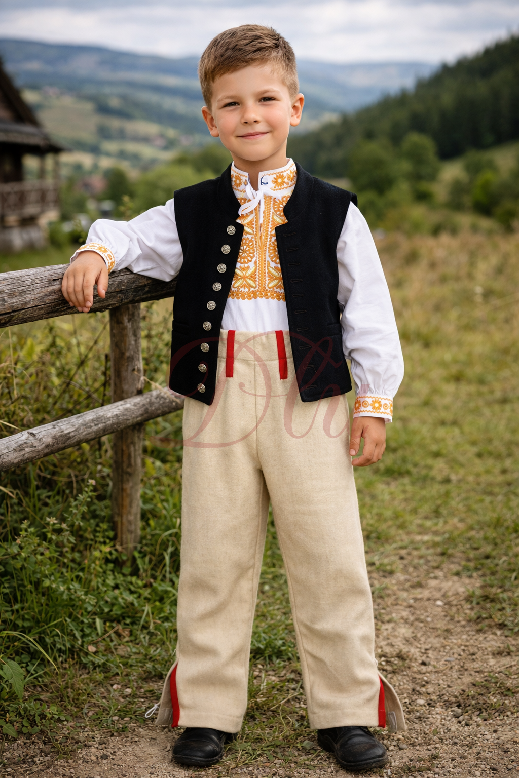Tento detský chlapčenský kroj vychádza z tradičného detvianskeho odevu a je spracovaný s dôrazom na detail a autentický vzhľad.